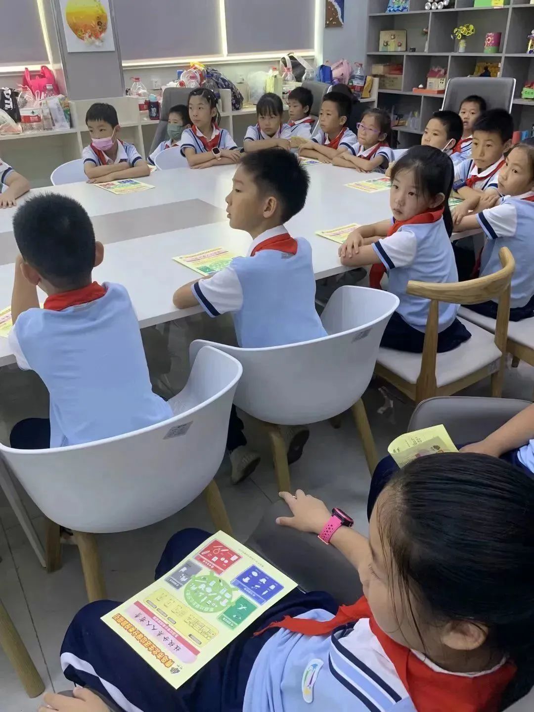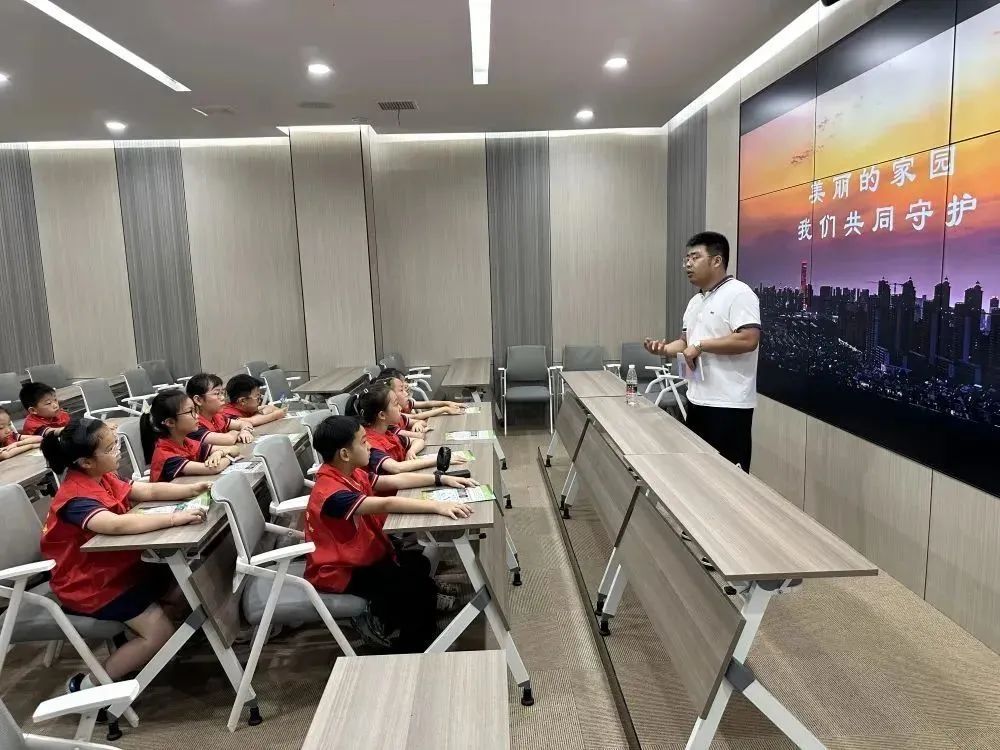 队员们到达市北区垃圾分类研学基地后,观看了垃圾危害及环保宣传视频。视频让队员们更加深刻地意识到乱扔垃圾对地球家园带来的巨大伤害。