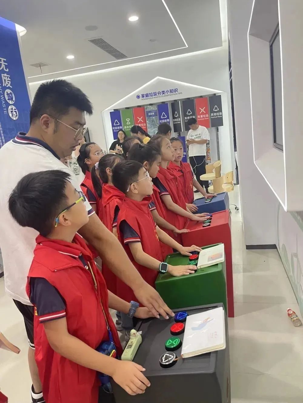 活动中,少先队员先参观了市管理局的垃圾分类宣教馆,学习垃圾分类的知识。宣讲员认真地为少先队员们讲解了垃圾分类的做法,介绍了分类设施标志标识,详细介绍了生活垃圾分类投放、分类收集、分类运输和分类处置操作规范。