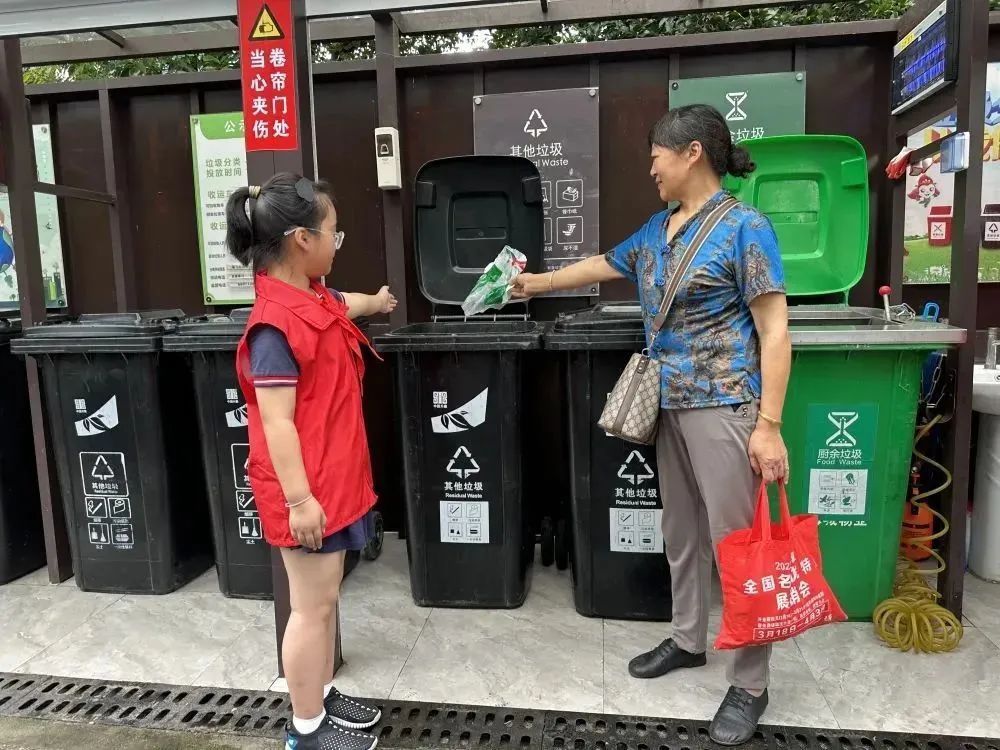少先队员们将学习到的垃圾分类的知识,及时运用到实际生活中。他们走进小区,在身体力行的实践活动中,意识到“垃圾只是被放错地方的资源,通过正确分类处理,就可以循环利用,变废为宝”。