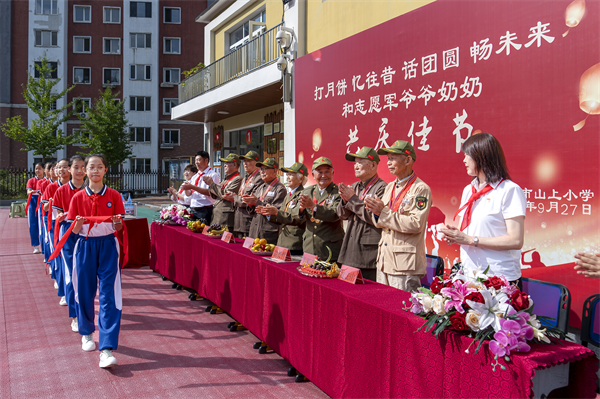 一年一度秋风劲,又是月圆柳梢头。为弘扬传统节日文化,在中秋、国庆双节来临之际,丹东市山上小学党支部、关工委、少工委诚邀志愿军爷爷奶奶、家长代表、及全体师生欢聚一堂,在操场隆重举行“打月饼 话团圆 忆往昔 畅未来 和志愿军爷爷奶奶共庆佳节 ”迎中秋庆国庆主题活动。