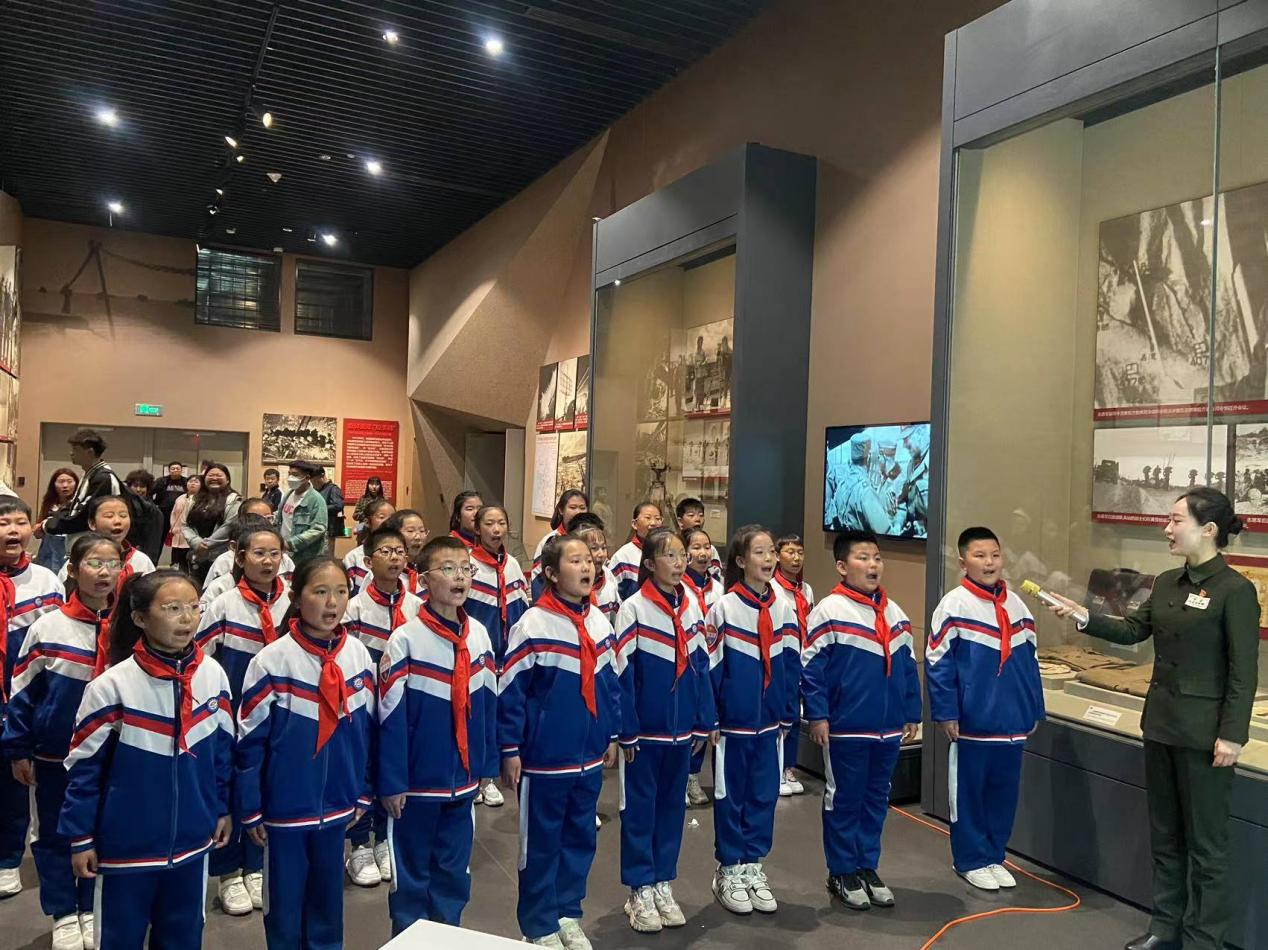 最后,山上小学的同学们热情邀请金寨县的同学有时间到丹东,到美丽的鸭绿江畔,到抗美援朝纪念馆,亲耳聆听志愿战士的英雄故事,亲身感悟伟大的抗美援朝精神!并将一曲铿锵有力的《中国人民志愿军战歌》送给他们,表达了队员们对革命先辈的崇高敬意!