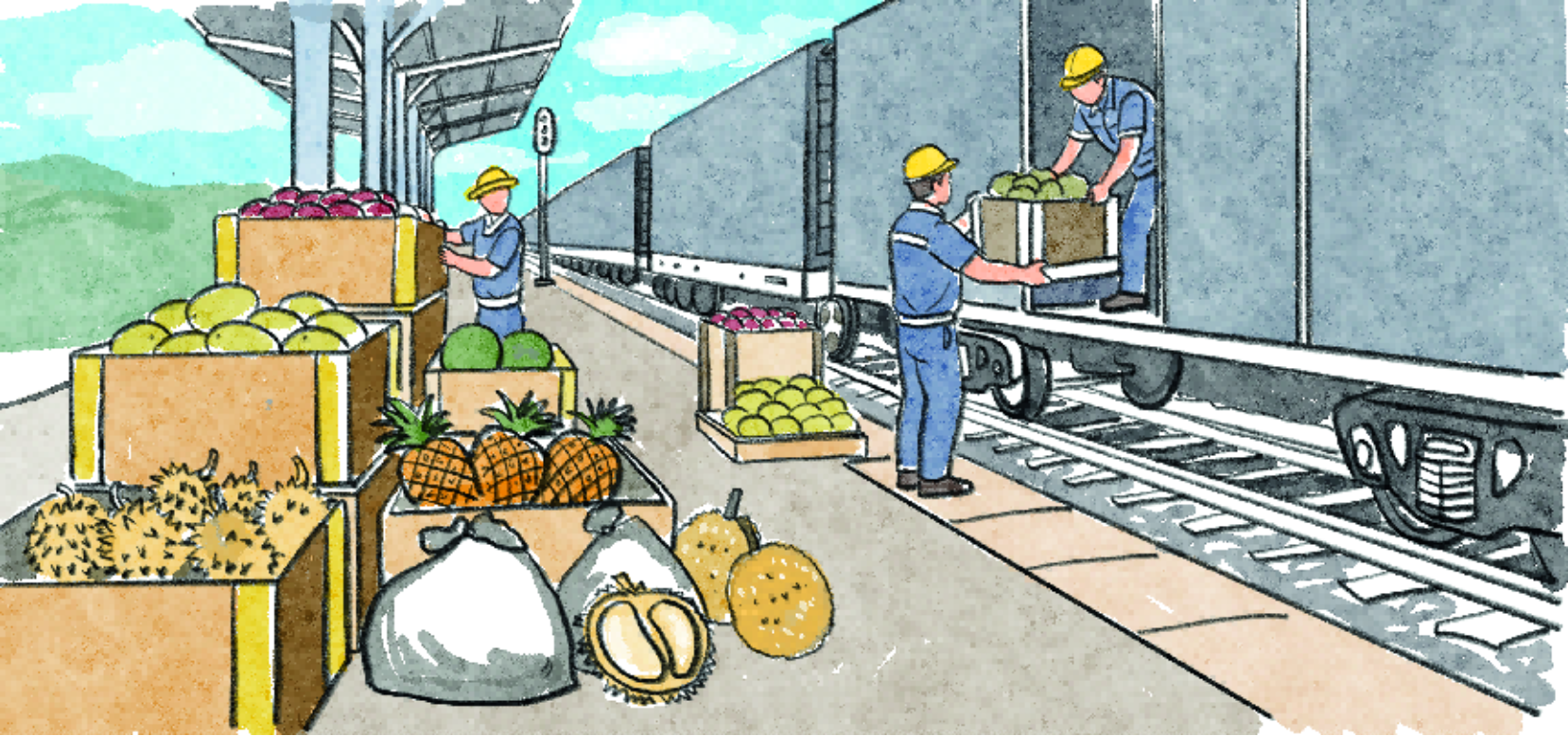 2021年12月3日,中老铁路建成通车了!它从中国昆明出发,直达老挝首都万象。过去,榴梿、山竹这些热带水果到我们国家,得坐好几天汽车或轮船;现在,坐上“水果专列”,最快26小时送到,我们也就能吃到更新鲜、更便宜的热带水果啦!