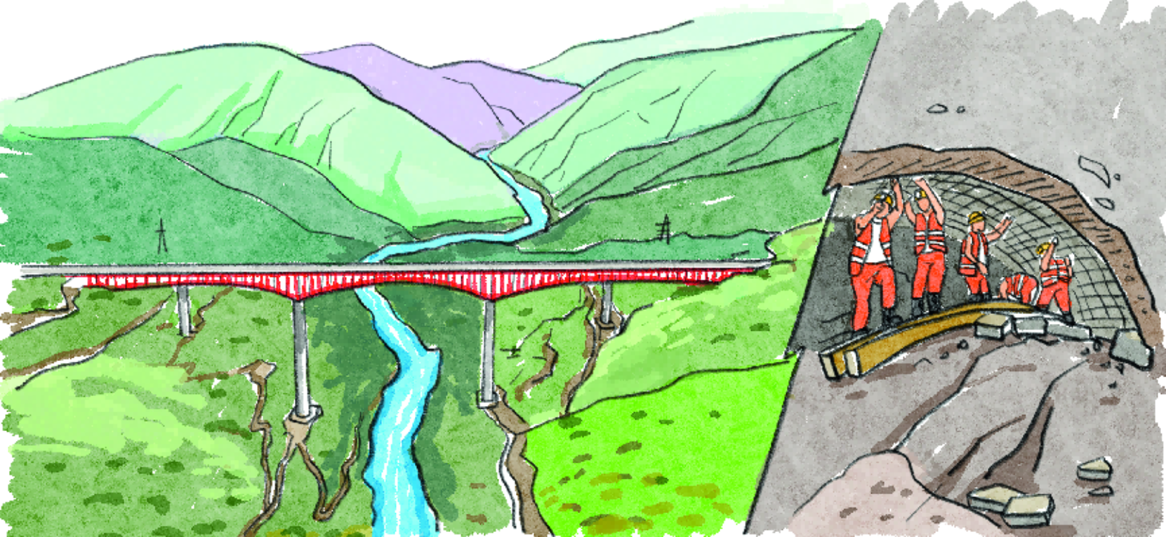 这条铁路不是铺出来的,而是架出来、挖出来的。铁路通过的地方地质复杂,建设者们不仅要抵御超过50℃的高温,还要应对日均约4万立方米的洞内涌水——这相当于灌满17个标准游泳池。历经重重挑战,最终挖出167座隧道,架起301座桥梁,才建成了这条穿越崇山峻岭的“钢铁丝路”。