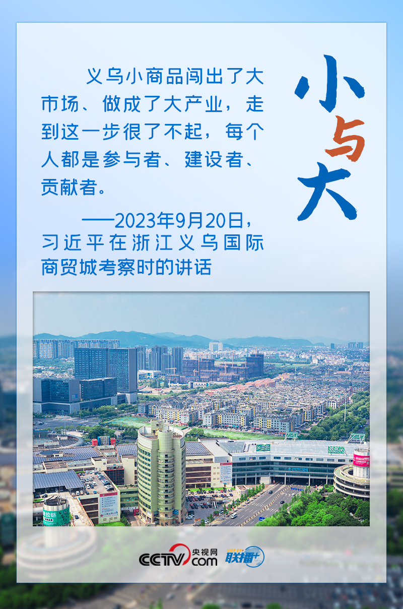 习近平与义乌颇有渊源。2002年底,担任浙江省委书记不久,他就来到义乌国际商贸城,深入市场交易区考察调研。在浙江工作期间,他10余次到义乌调研,多次深入小商品市场,为这里的发展把脉定向。如今的义乌,小商品拥有大市场,小企业释放大活力,“小县城”孕育大机遇。小中见大,折射着中国对外商的吸引力,也展现出中国经济的韧性与活力。