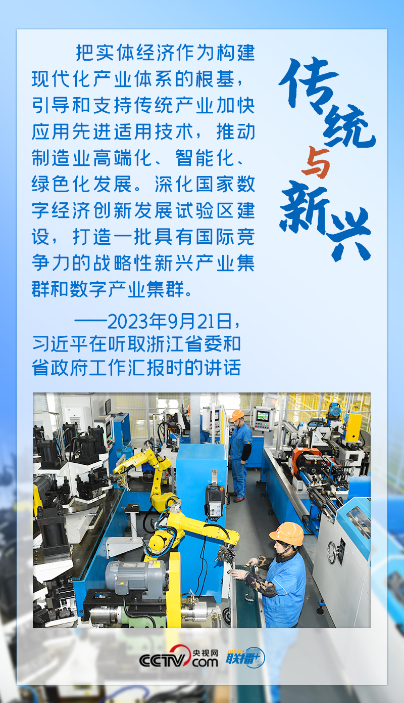 习近平总书记在会议、考察中多次对传统产业转型升级、战略性新兴产业发展布局作出部署。2020年8月,在安徽考察期间,总书记强调要“坚持把做实做强做优实体经济作为主攻方向,一手抓传统产业转型升级,一手抓战略性新兴产业发展壮大”。传统制造业是现代化产业体系的根基,而战略性新兴产业是引领未来发展的新支柱、新赛道。只有坚持传统产业转型升级与战略性新兴产业培育并举,才能不断推动我国产业结构优化升级、实现高质量发展。总书记本次之江行再次把脉实体经济,其重要性不言而喻。
