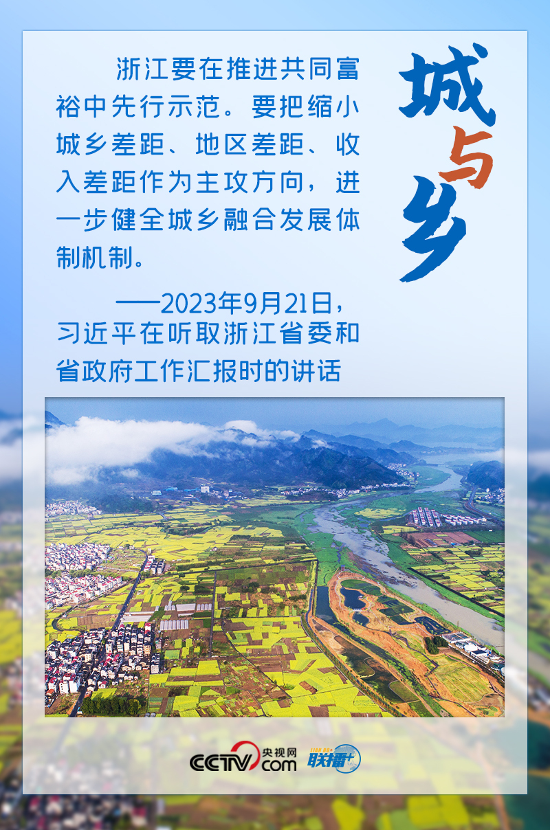 城乡差距问题是制约我国实现共同富裕的显著短板。习近平总书记曾说:“促进共同富裕,最艰巨最繁重的任务仍然在农村。”新时代扎实推动共同富裕,首先要破解城乡发展过程中的不平衡不充分难题,通过乡村振兴战略和建立健全城乡融合发展的体制机制来提高农业农村现代化水平,进而形成工农互促、城乡互补、全面融合、共同繁荣的新型工农城乡关系。浙江是我国城乡协调发展水平较高的地区,近年来在推进城乡融合发展、缩小城乡差距方面进行了大胆探索,中央支持浙江高质量发展建设共同富裕示范区的四项战略定位就包括建设“城乡区域协调发展引领区”,此次总书记再次提出明确要求,足见他对浙江在推进共同富裕中先行示范寄予厚望。