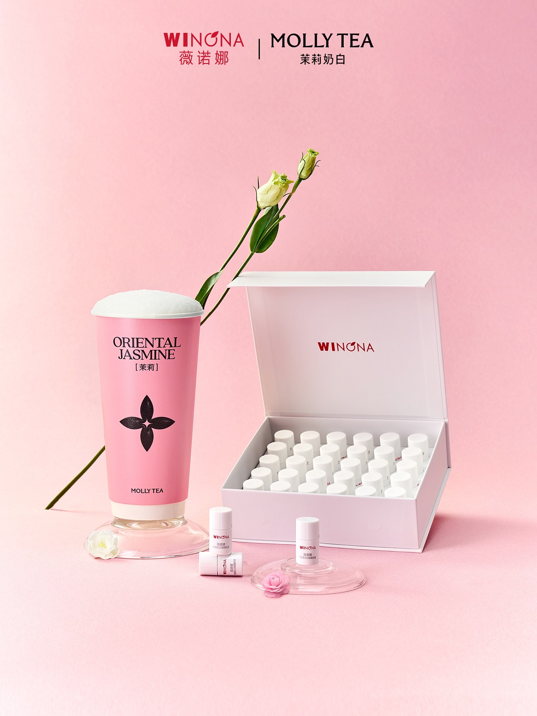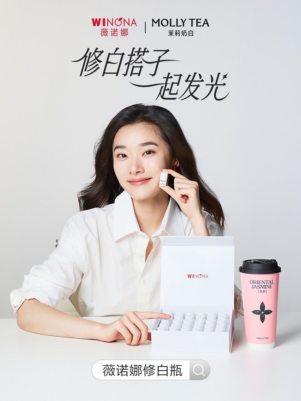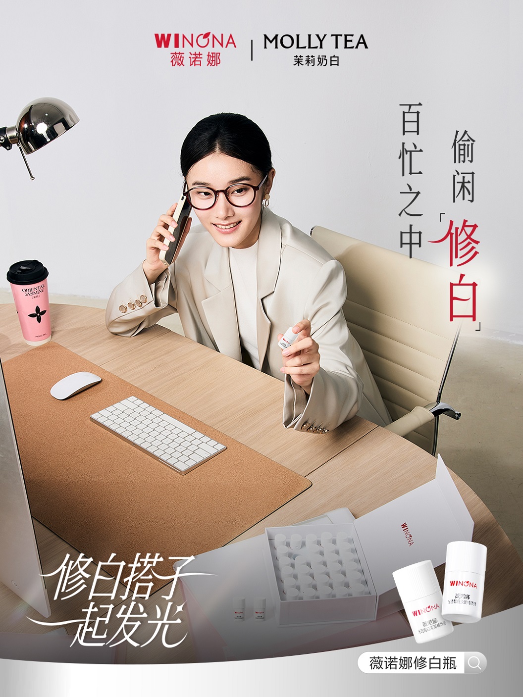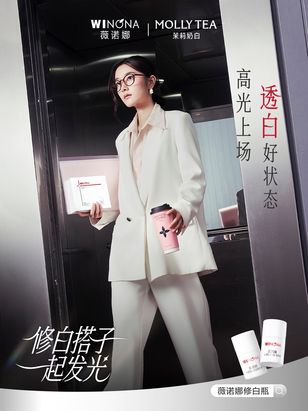 就在此时,薇诺娜修白瓶和茉莉奶白凑成了一个意想不到的“搭子CP”:以皮肤学植萃科技,邂逅东方摩登茶饮,喝奶白,用修白,在“修白搭子,一起发光”主题下,帮职场人找回开工的状态感。