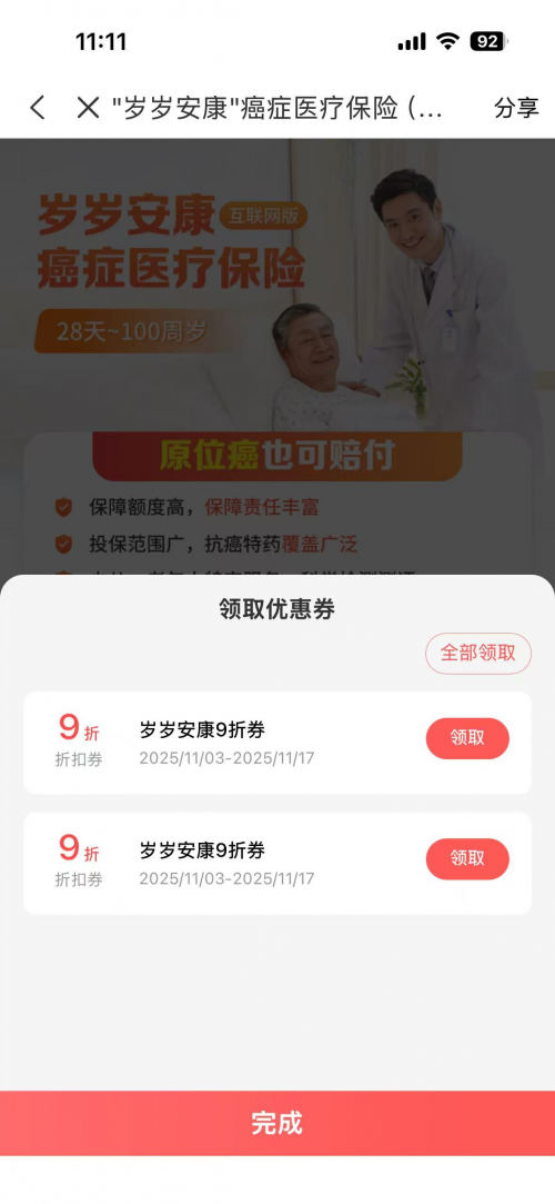 第三类, 核心直惠型: 以中国人保为代表的头部险企。这类机构则选择在官方自营平台上,针对百万医疗、防癌险、家财险等家庭“刚需”的核心产品,直接提供“商城折扣券”,如9折优惠。这种方式更为直接,优惠力度也相对透明。