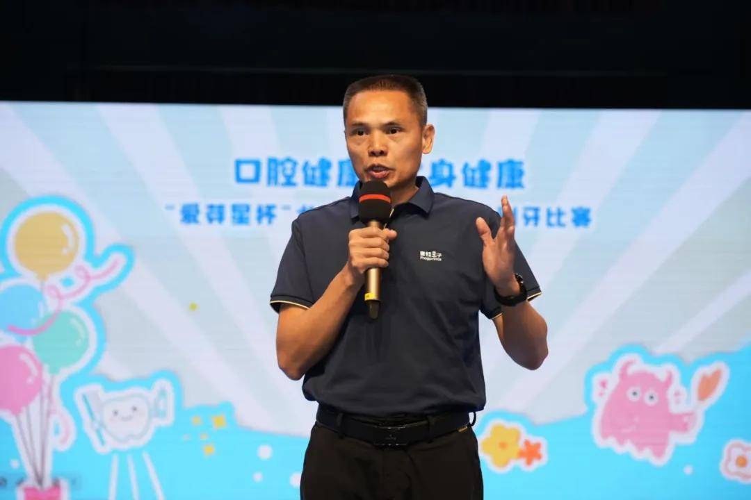 活动伊始,青蛙王子集团旗下福建爱洁丽日化有限公司总经理陈万金致开场辞。他首先对莅临现场的领导、专家、参赛家庭表示诚挚感谢与热烈欢迎,并强调了科学刷牙不仅关乎全身健康,是回报率极高的健康投资,更是口腔健康领域“治未病”最根本的实践,通过亲子共学模式,既能培养儿童正确的口腔护理习惯,更能将“健康种子”深植家庭。