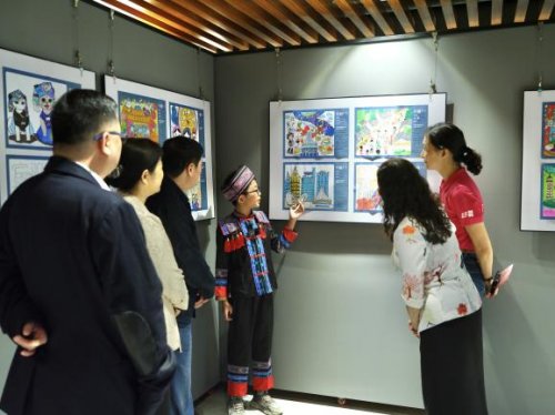 本次展出的作品由中国下一代教育基金会健康成长公益项目——青少儿传统文化传播活动组织上海、广西两地儿童创作完成。孩子们以画笔捕捉节庆习俗、劳作场景与自然风貌,将乡音、乡俗、乡情与民间智慧凝练于方寸画卡之间。这些作品不仅唤起了儿童对本土文化的认同感,也以其纯真视角构建起跨地域情感交流的桥梁。