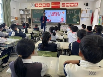 2025 年 11 月全国消防宣传月期间,全国未来教育样板校金义小学联合金山大道消防救援站,以 “消防进校园,致敬火焰蓝” 为主题开展消防安全教育活动,通过 “知识宣讲 + 实战演练 + 沉浸式体验” 模式,筑牢师生安全防线,深化学生安全素养培养。
