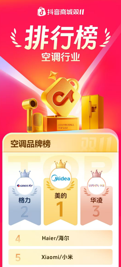 而这几天双11收官战,华凌空调直接杀入前三,并连续霸榜京东服务榜、抖音智能空调人气榜、空调挂机爆款榜等多个榜单前排。