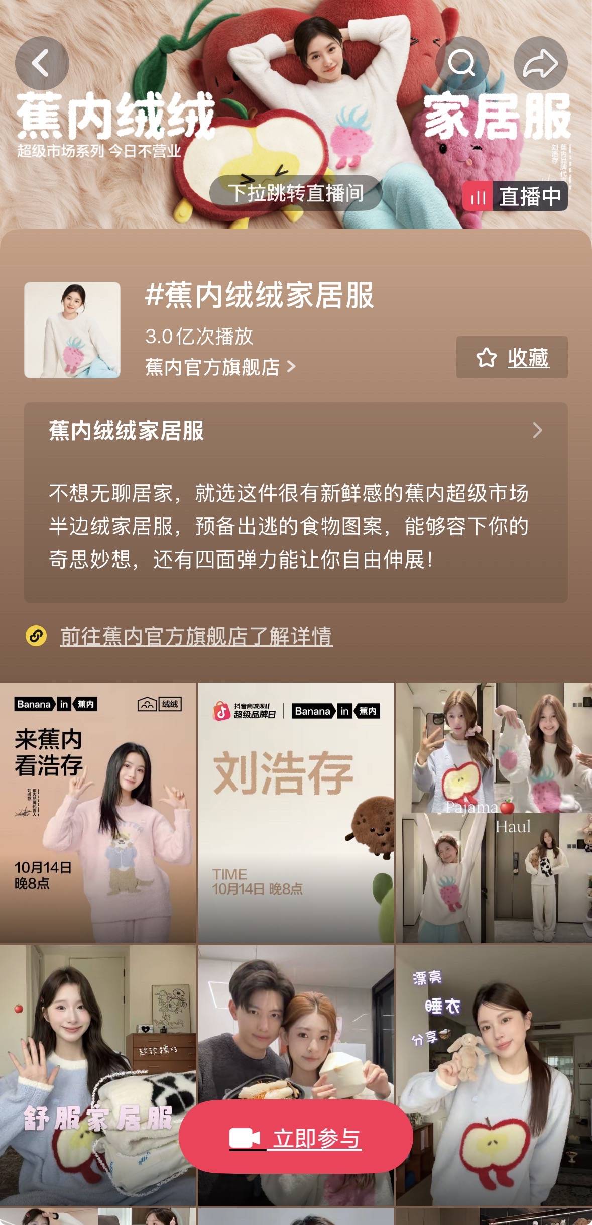 首先,「抖音风格实验室」为蕉内打造专属场景阵地——通过活动H5搭建“品牌限定风格区”,以沉浸式视频内容,将蕉内绒绒家居服的柔软质感、时尚设计与居家场景结合,直观传递“绒系美学”的核心理念,强化用户对品牌“舒适与美学兼具”的认知。