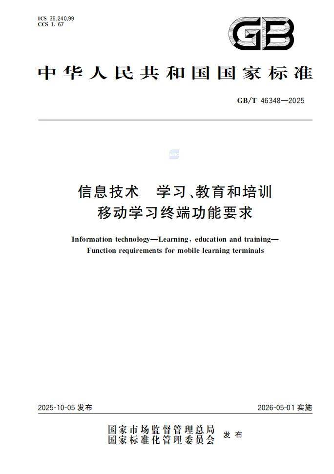 近日,国家标准化管理委员会 正式发布《信息技术学习、教育和培训移动学习终端功能要求(GB/T 46348-2025)》国家标准,将于明年5月正式实施。该国家标准由清华大学、北京高等教育学会等全国20多家高校、科研院所和企业参与研制。其中北京世纪好未来教育科技有限公司(学而思)作为核心起草单位之一,深度参与标准编制 ,展示了企业在移动学习终端技术的专业实力和企业责任。