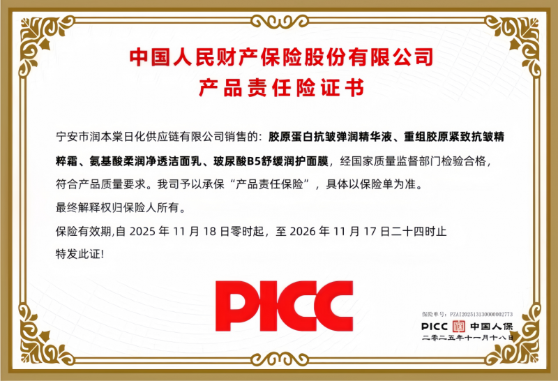 此次与润本棠达成的战略合作中,人保财险为润本棠提供了200万元的产品责任保险保障 ,覆盖其全线产品。这一保险安排为企业产品质量提供了强有力的第三方保障。