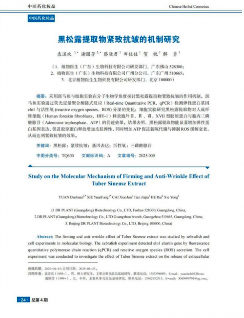 像是成熟的产品体系里的石斛兰,研究证实石斛兰多糖促进胶原蛋白生成、提升皮肤含水量;冬虫夏草系列里的虫草素,可调节皮肤生物节律钟基因;再到如今能显著抑制斑马鱼体内活性氧(ROS)的分泌,从源头减缓皮肤老化过程的黑松露······