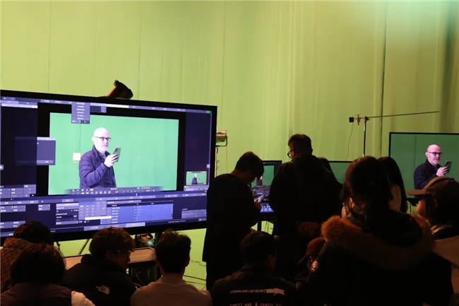 在四川传媒学院国际学院的实操现场,尊正营销与技术团队携手师生完成绿幕拍摄场地的搭建与测试,直观呈现核心技术落地细节,重点聚焦现场灯光及设备搭建、基于图像照明技术(IBL)的应用、摄像机跟踪系统的调试、实时抠像与实时合成的实操,以及基于 Live FX 的色彩管理与实时调色工具的运用,全方位展现虚拟制作的关键技术链路。