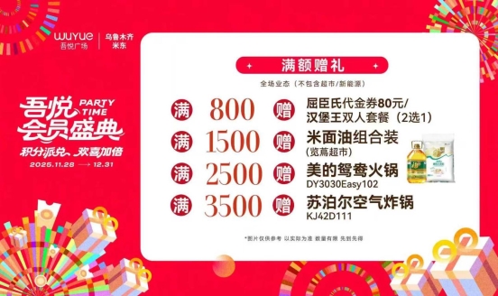 新城控股集团乌鲁木齐米东吾悦广场负责人赵总表示:“作为商场2025年度的压轴大戏,本次会员盛典不仅准备了海量优惠与贴心服务,为市民带来满满的消费乐趣,更意在传递新城控股集团‘与城市共生共创’的经营理念,全力为米东市民打造一个有温度、有创意的幸福生活聚集地。”值得提醒的是,吾悦会员年度积分即将进入清零倒计时,各位会员可尽快登录吾悦广场官方小程序查询积分明细并完成兑换,在辞旧迎新的氛围中收下这份专属年终福利。