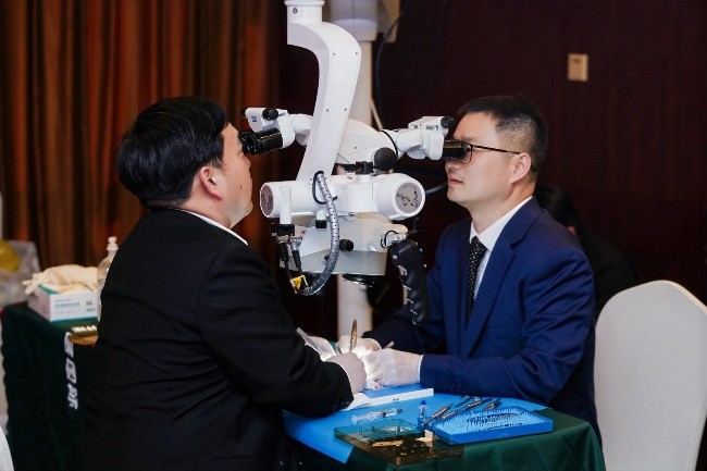 全国超显微吻合大赛一等奖获得者——王成教授及顾仕林教授操作演示中
