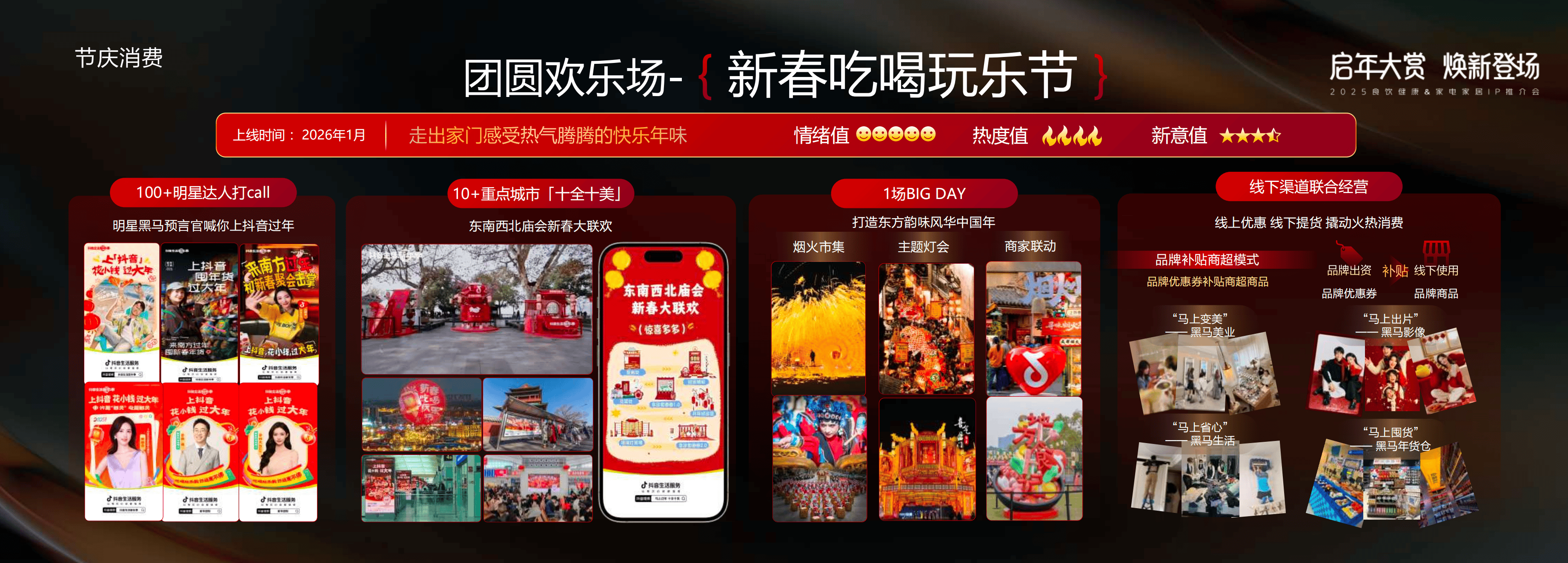 综上,面对即将到来的2026年春节,基于平台洞察,巨量引擎已经准备好了丰富多元的优质内容IP,想要在抖音做营销的品牌可以根据自身目标圈层、人群、场景、品牌理念和营销目标,去匹配相应的春节情绪场景,找到合适的IP项目。
