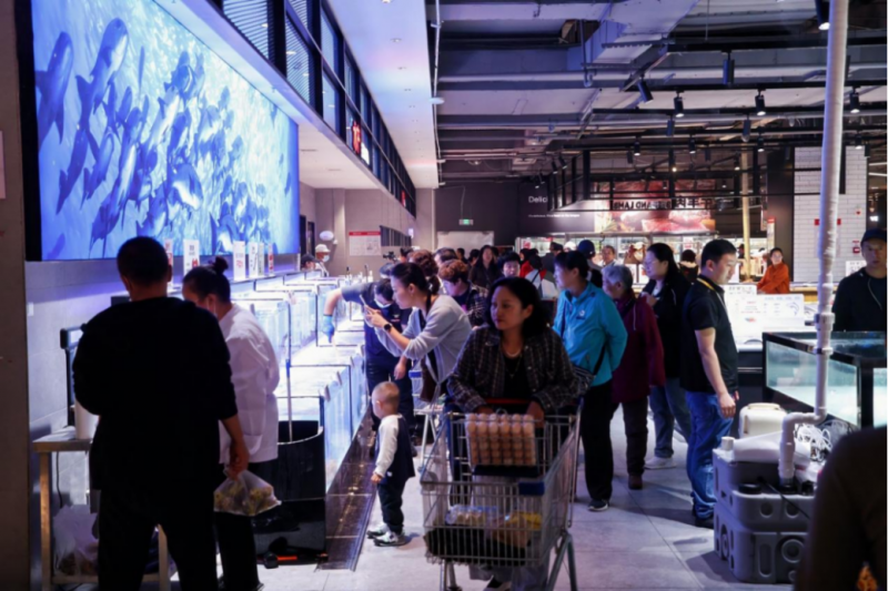 在生鲜类别里,水产海鲜是比较难做的,内蒙古身处内陆,单趟运输距离超过650公里,保活率是最大的挑战。锡林浩特调改首店开业当天,买到帝王蟹的冯女士说,“帝王蟹半小时抢购一空,波龙不到中午就卖完,幸好我抢到了。能买到这么鲜活的海鲜,真是太惊喜了。”