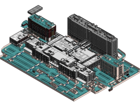 针对1000张床位需求,项目着力攻克三大核心施工难题:净化手术区采用PVC地胶工艺,洁净度稳定达7级;防辐射区域以巯酸钡防护涂料搭配铅版定制施工,兼顾防护效果与结构安全;通过573张节点图纸,实现医用气体、物流传输等密集管线有序排布。