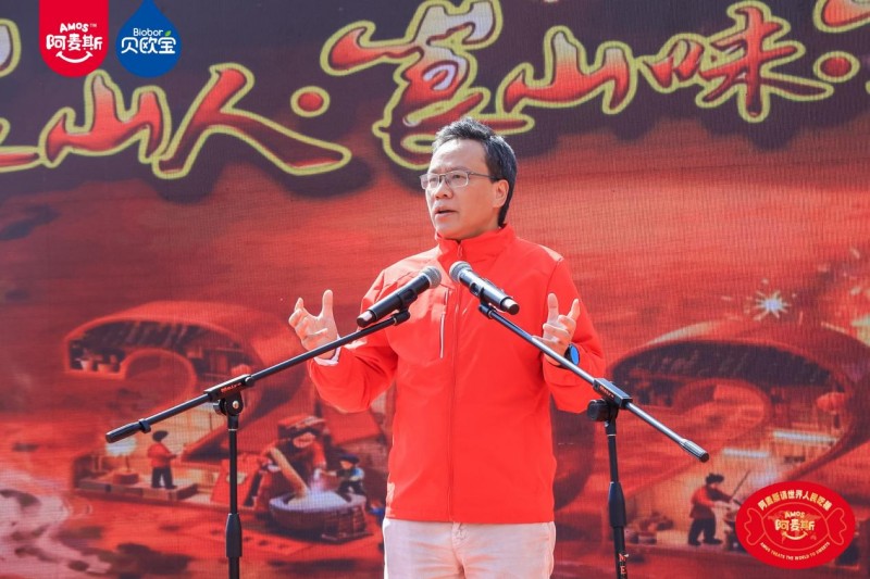 作为本次活动重要参与方代表,金多多食品集团董事长马恩多上台致辞。他向精心筹备本次“崀山过大年”活动的新宁县委、县政府,向所有为家乡发展默默付出的建设者,向此刻欢聚一堂的父老乡亲们,表示衷心的感谢,并欢迎大家来崀山吃糖!他说到:“我们生于新宁,长于斯土。夫夷江是母亲河,滋养血脉;崀山是精神峰,铸就脊梁。金多多食品集团的企业使命是做世界的甜蜜使者,2026年全球品牌推广主题是“Amos阿麦斯请世界人民吃糖”。我们相继在北京请奥运冠军吃糖,在内蒙古冰雪草原,请蒙古人民吃糖,在洛杉矶请格莱美歌星吃糖,在米兰冬奥会,请体育记者和冬奥冠军、意大利小朋友吃糖,现在特别高兴我们回到美丽的新宁崀山,请家乡人民吃糖。!”他同时宣布,金多多食品集团将启动 “为新宁人民送一吨糖” 春节公益行动。送糖行动由新宁县销售团队全程执行,将甜蜜礼包陆续送到全县群众手中,以实实在在的暖心举措,诠释企业与家乡人民共欢庆、同发展的深厚情谊。