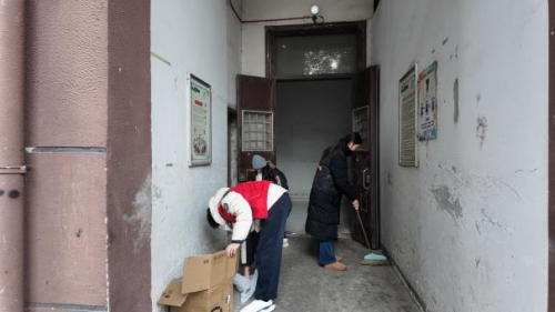 志愿者们按楼栋分组,携带手套、垃圾袋、清洁工具等有序进入各单元开展清理工作,重点对楼道内长期堆积的废旧家具、纸箱、自行车等物品进行集中清运,对消防通道、电表箱周边等关键区域进行彻底整理,做到无堆积、无遮挡、无隐患。清理过程中,志愿者们不怕脏、不怕累,认真清理每一处死角,让原本杂乱的楼道变得整洁畅通。