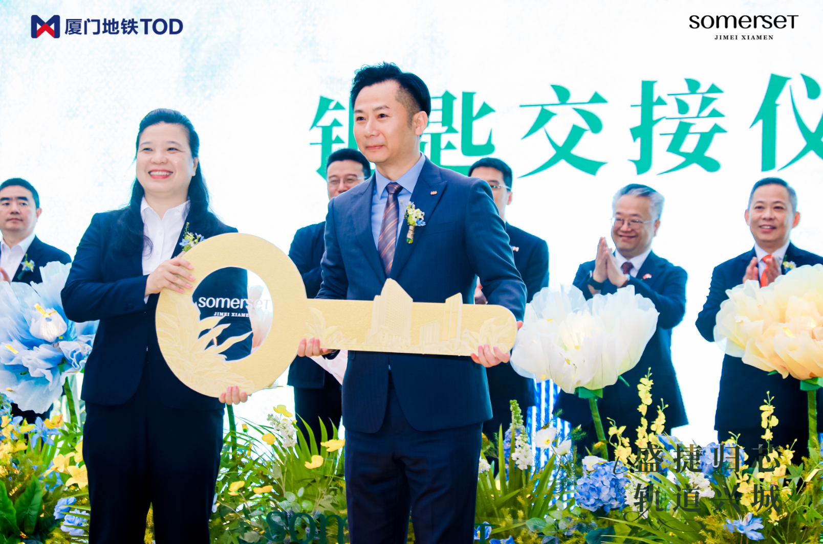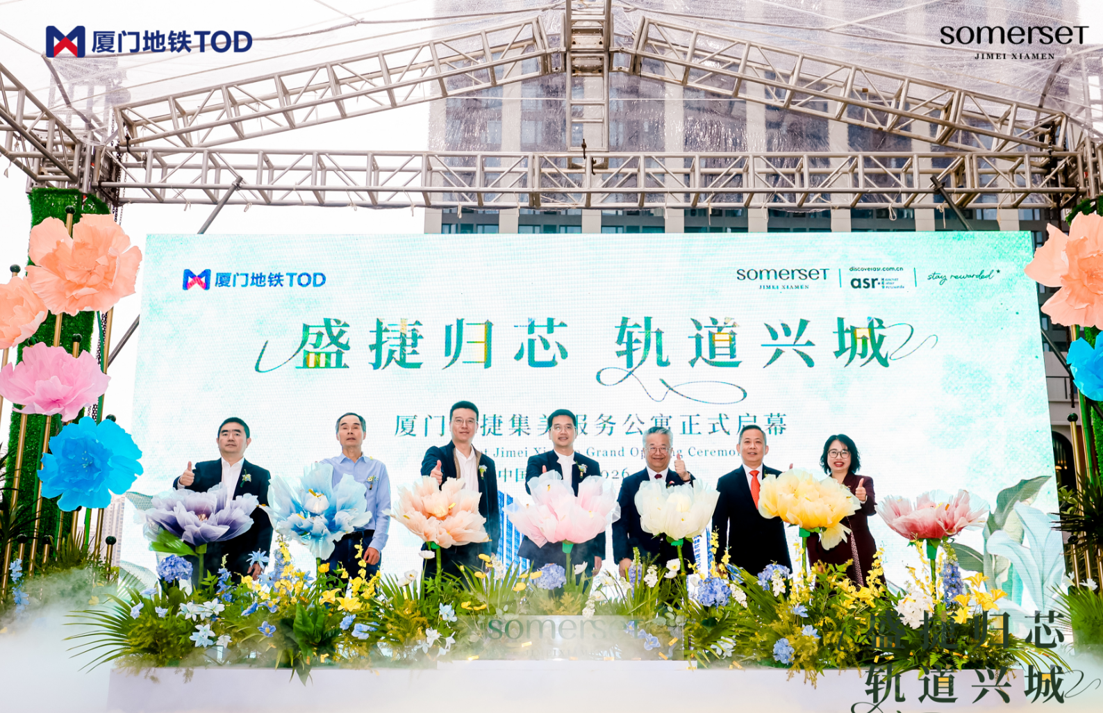 (2026年4月3日)由厦门轨道集团旗下进行轨道沿线城市开发及运营管理的厦门地铁投资集团投资建设、凯德投资旗下旅宿业务板块——雅诗阁有限公司(以下简称“雅诗阁”)运营管理的厦门盛捷集美服务公寓今日举行开业庆典,正式投入运营。此举不仅标志着雅诗阁旗下倡导可持续发展的品牌——盛捷(Somerset)在厦门实现深度布局,为集美软件园的商旅人士及旅居家庭带来“和谐之境,自然共融”的全新旅居体验,更让厦门地铁TOD“轨道上的城市全景生活”再添关键一笔。