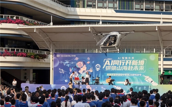 3月30日,深圳实验学校初中部第28届科技节盛大启幕,鹏城低空经济产业发展(深圳)有限公司携多款尖端eVTOL飞行器与无人机矩阵强势助阵,将一场震撼的低空科技盛宴搬进中学校园,以硬核实力点燃青少年科创热情,为深圳科创教育注入全新活力。