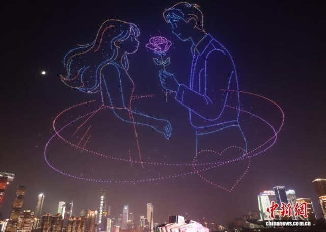 图为无人机在空中摆出“重庆好美”图案。中新社记者 周毅 摄