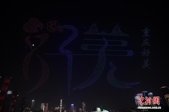 重庆上演无人机灯光秀 璀璨光影贺国庆