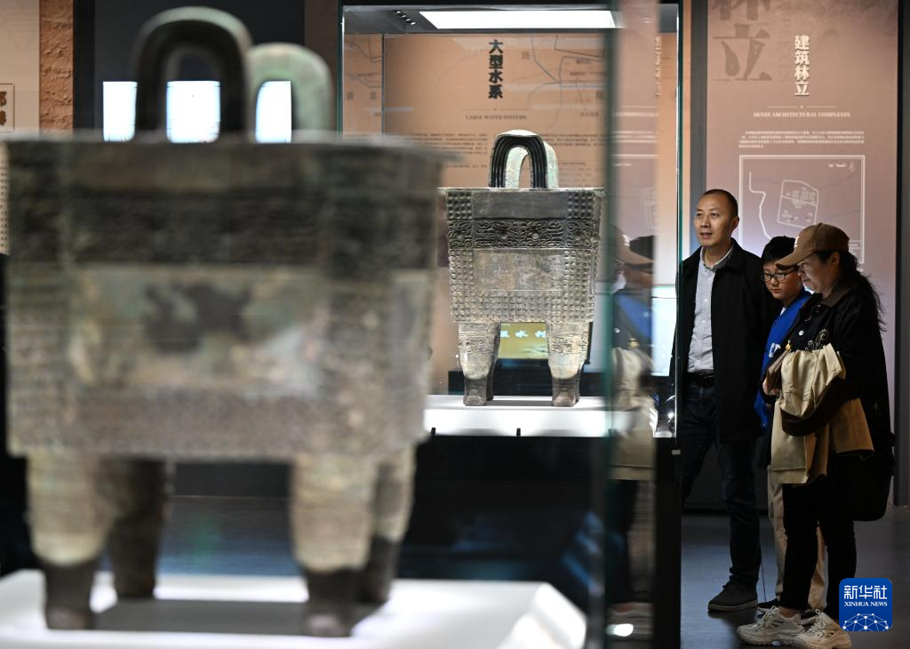 10月3日,观众在郑州商代都城遗址博物院参观“国宝回家乡——纪念郑州商城发现70周年考古新发现展”。