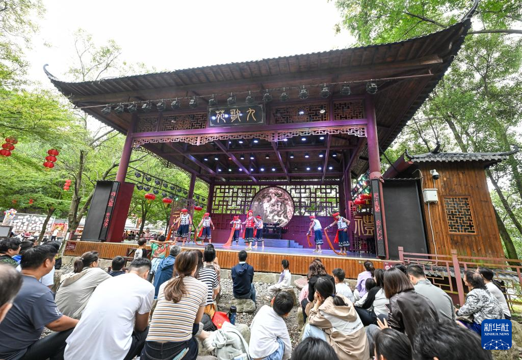 10月3日,人们在湖北省宜昌市秭归县屈原故里景区观看表演。