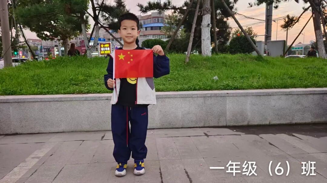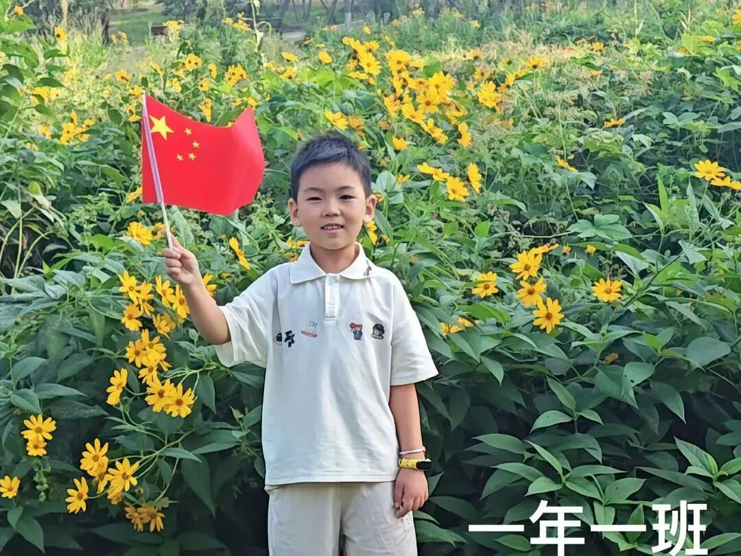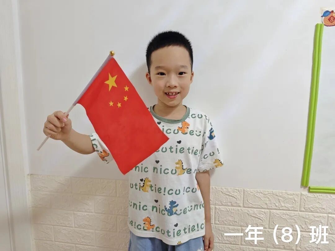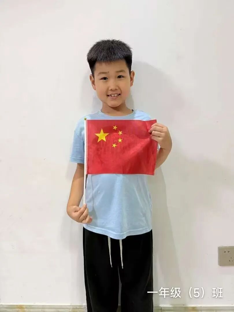 一年级的小朋友精神饱满,与国旗亲密合影。一张张笑脸洋溢着自豪与崇敬,童真的目光中闪烁着对祖国的热爱,展现出新时代小学生的朝气与信仰。