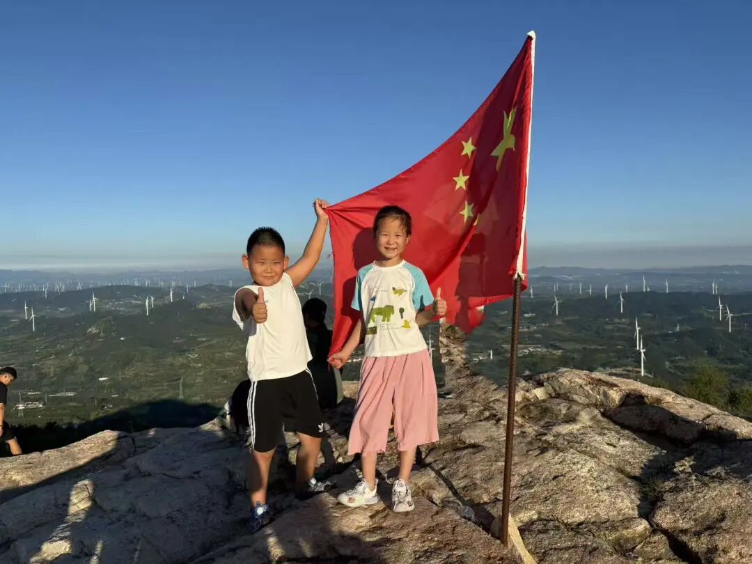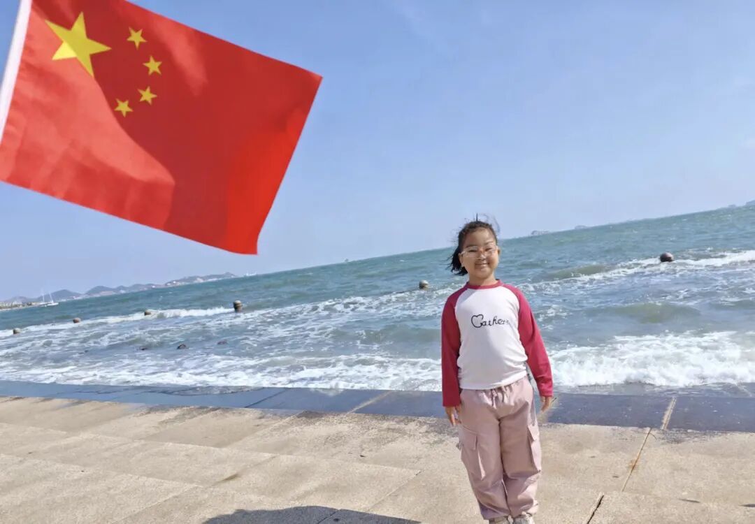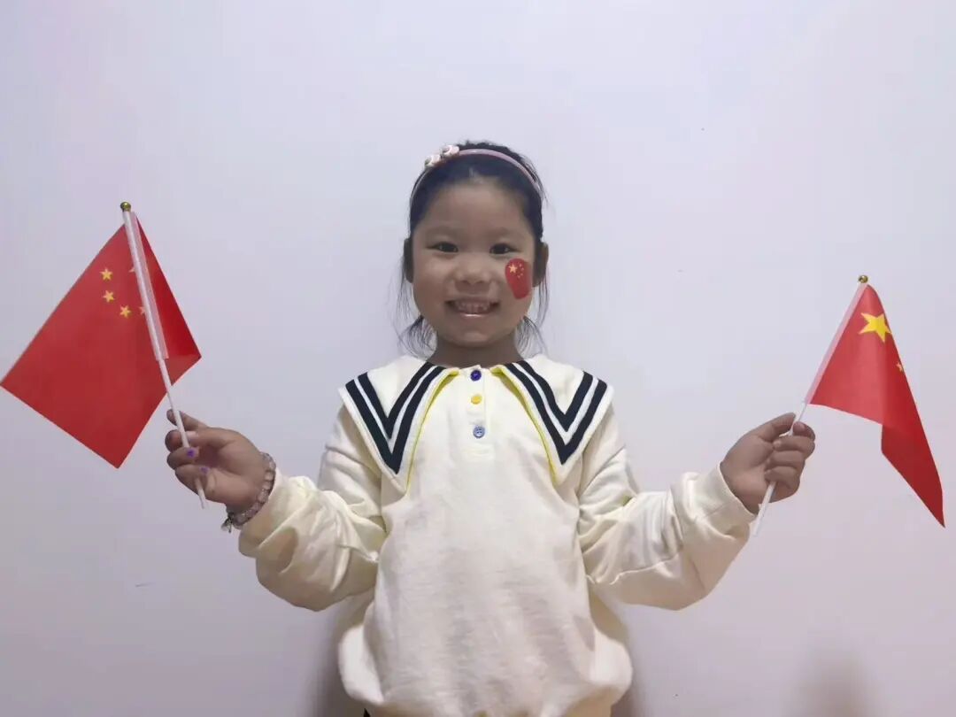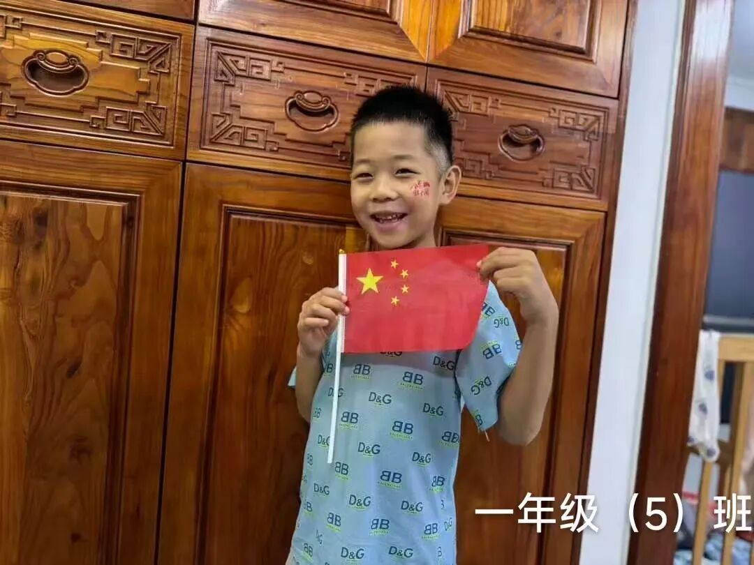 一年级的小朋友精神饱满,与国旗亲密合影。一张张笑脸洋溢着自豪与崇敬,童真的目光中闪烁着对祖国的热爱,展现出新时代小学生的朝气与信仰。