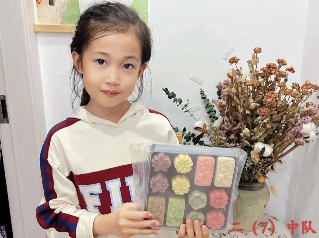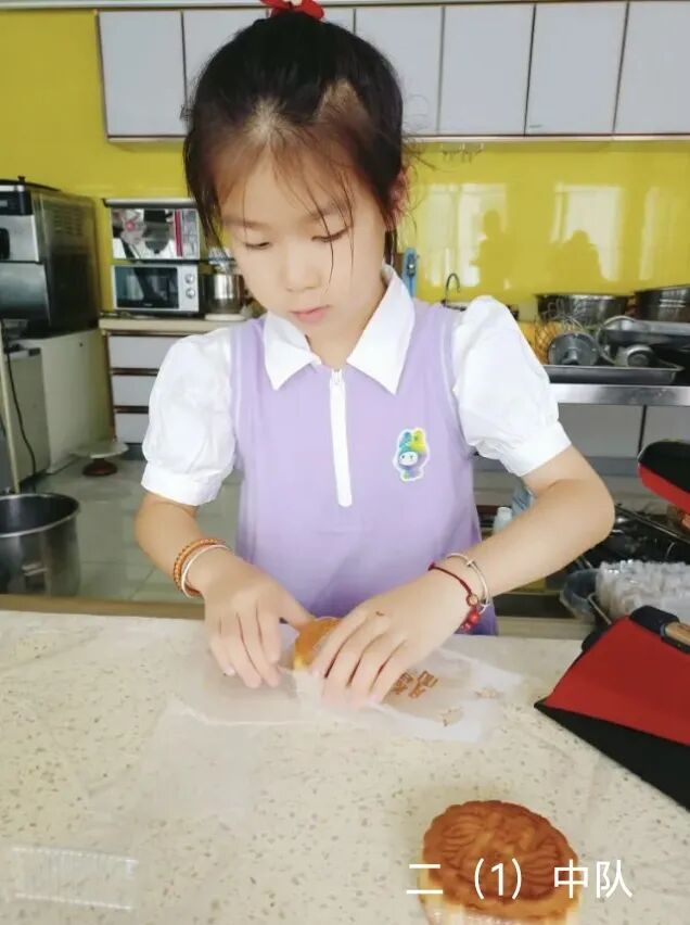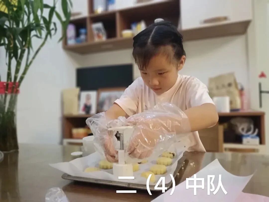 二年级队员们在家长的指导下,亲手制作月饼。揉面、包馅、压模……队员们在劳动中感受传统节日的魅力,每一块月饼都承载着团圆与感恩的甜蜜。