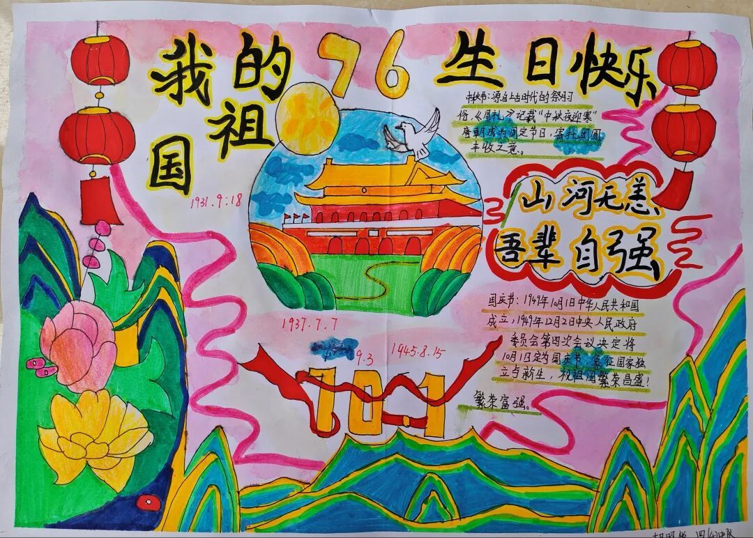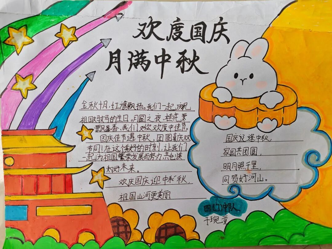 金秋送爽,丹桂飘香。为庆祝中华人民共和国成立76周年,弘扬中华民族优秀传统文化,福山区第三实验小学组织开展了“喜迎国庆·情满中秋——争做新时代好队员”主题系列活动。各年级队员积极参与,用自己的方式表达对祖国的热爱与对团圆佳节的期盼。
