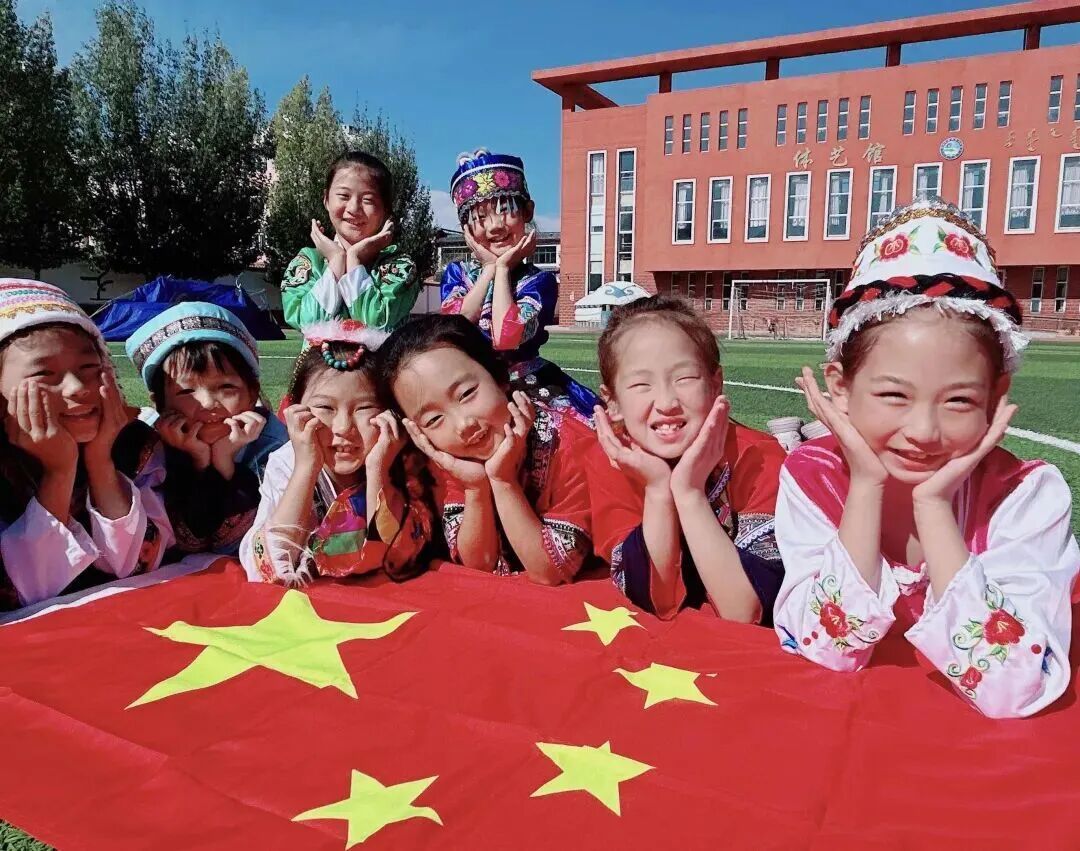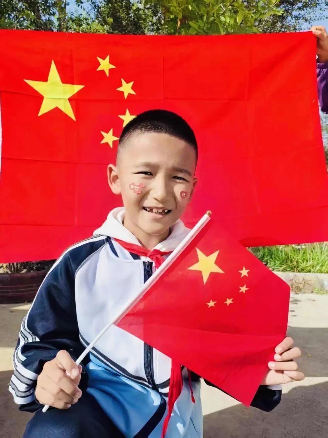 新疆维吾尔自治区塔城地区和布克赛尔蒙古自治县查和特乡学校的少先队员 祝福祖国繁荣昌盛,国泰民安!