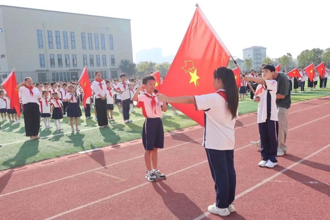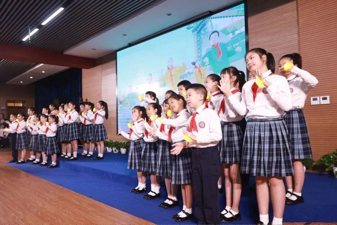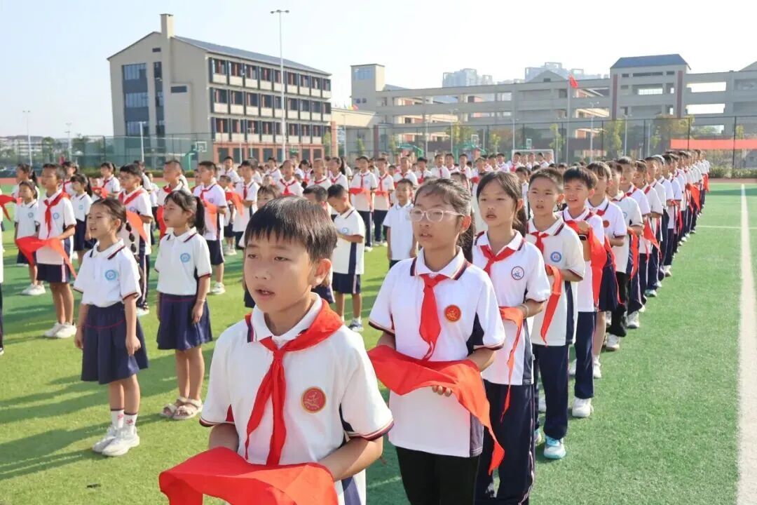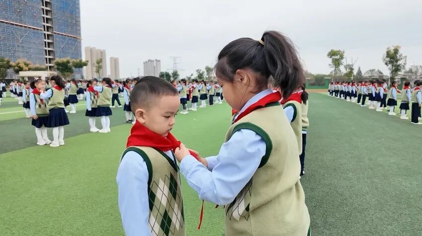 在队旗下,高年级的优秀少先队员为新队员佩戴上鲜艳的红领巾。通过参观少先队风采展板、学校劳动教育实践农场和课外社团活动室等方式,让少先队员们更加深刻地理解了红领巾的意义,感受到了少先队组织的光荣与责任。激励少先队员们用勤奋浇筑梦想,努力成长为堪当民族复兴重任的时代新人。
