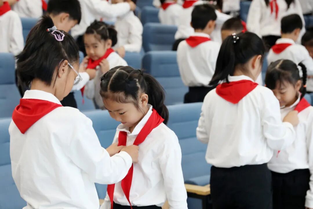 少先队是少年儿童健康成长的大学校。在郑州市二七区人和路小学国防教育大厅、党团队一体化功能室、少年军校活动室,红领巾讲解员详细介绍国防课程、实践活动、中队建设等情况,学员们以军务整理、武器装卸、武器模型制作等技能比拼,展现爱国崇军、自信自强的精神风貌。在学校报告厅,伴随着嘹亮的队歌声,主题队会拉开序幕,老队员为新队员佩戴红领巾,新队员庄严宣誓,光荣加入少先队组织。活动还通过微队课、国防教育训练营成果展示等形式,引导队员们在沉浸式教育中坚定理想信念、厚植家国情怀。
