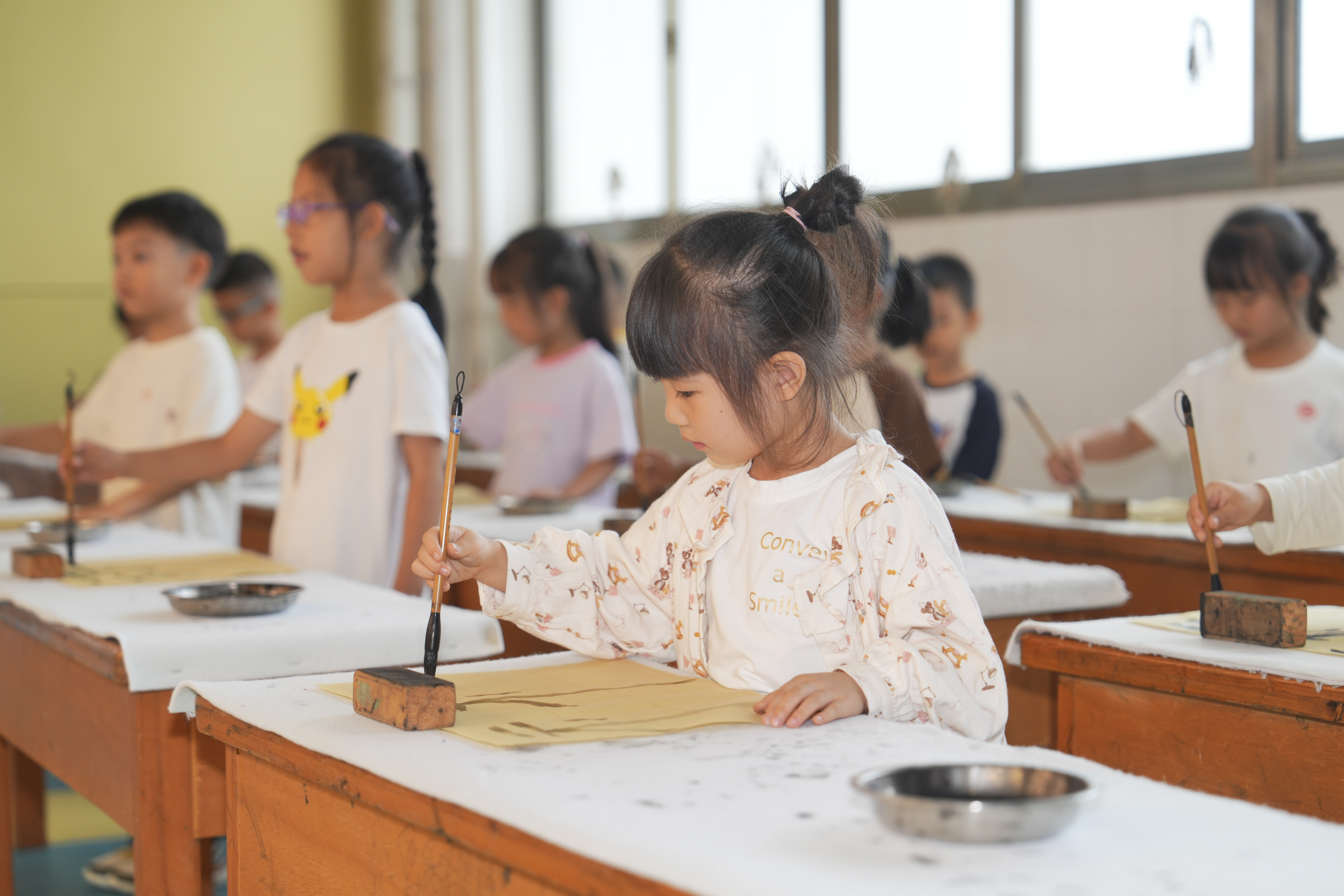 10月14日,在重庆市北碚区缙云幼儿园创意工作坊,孩子们在练习书法。秦廷富 摄
