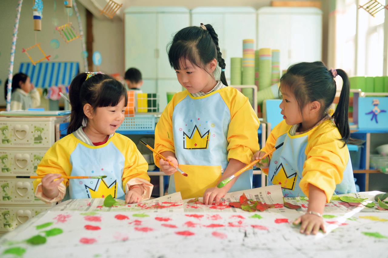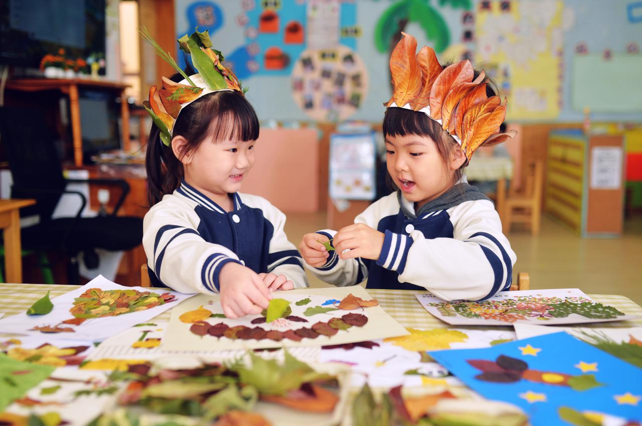 山东省青岛市市北区桦川路幼儿园的孩子们在制作秋叶拓印画。通讯员 王海滨 摄