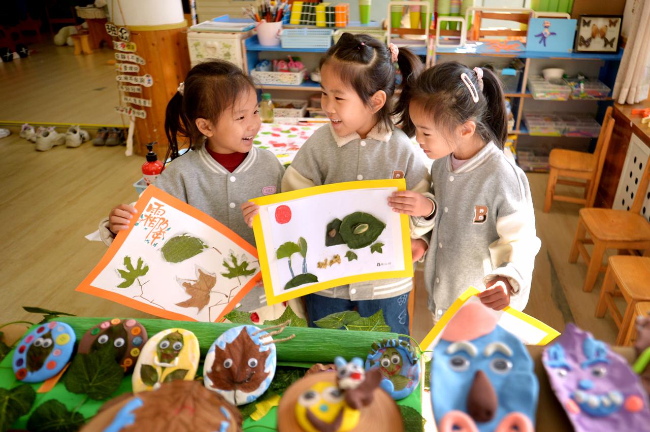 当日是霜降节气,山东省青岛市市北区桦川路幼儿园的孩子们利用废弃的秋叶巧做各种画作,以丰富的色彩感受自然,学习传统农耕节气知识。中国教育报-中国教育新闻网通讯员 王海滨 摄