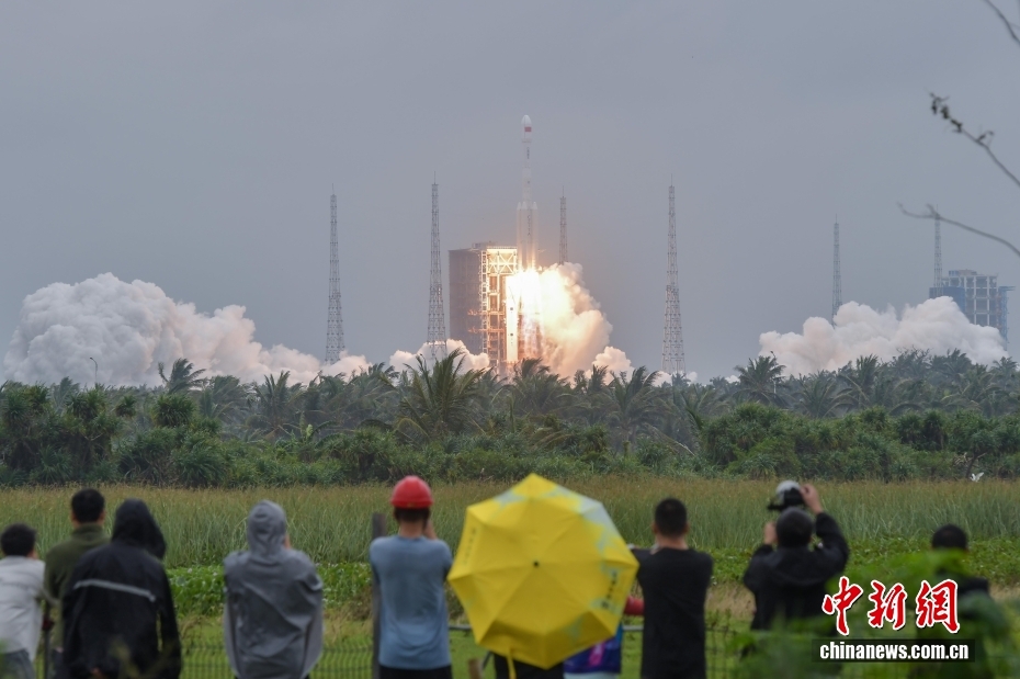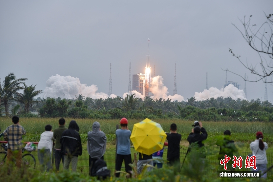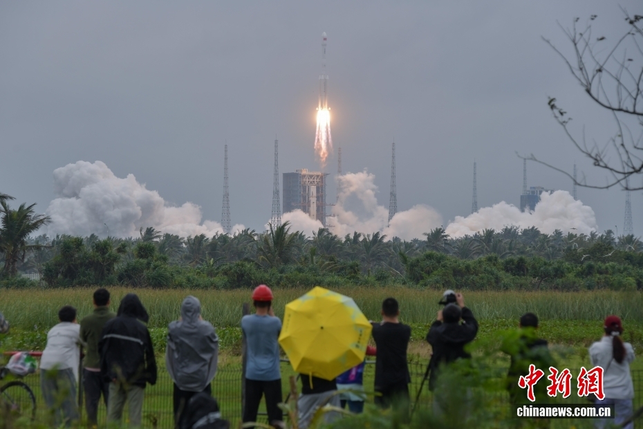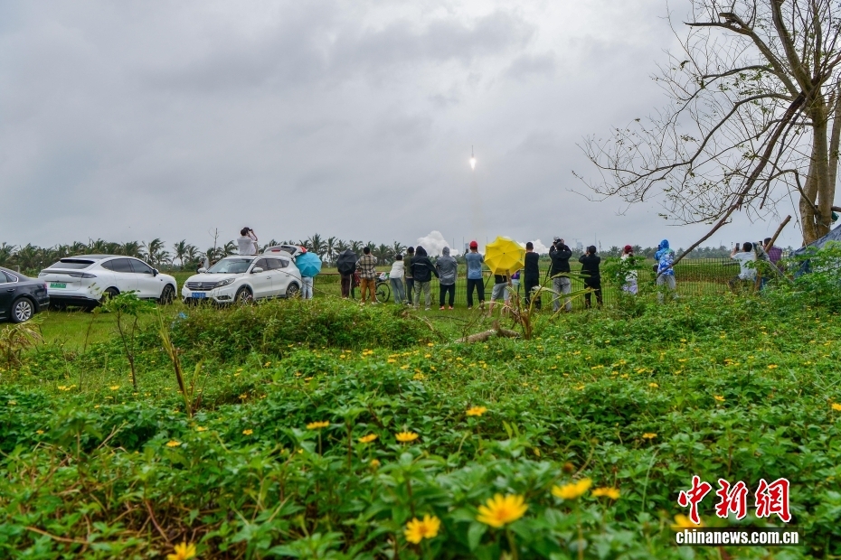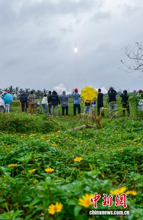 11月3日11时47分,中国在文昌航天发射场使用长征七号改运载火箭,成功将遥感四十六号卫星发射升空,卫星顺利进入预定轨道,发射任务获得圆满成功。该卫星主要用于防灾减灾、国土资源勘察、水利气象等领域。此次任务是长征系列运载火箭的第605次飞行。图为民众观看长征七号改运载火箭点火升空。