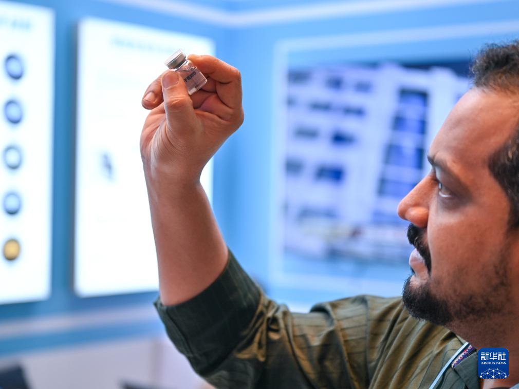 11月3日,观众在广交会展馆捷诺飞生物展台观看生物3D打印的样品。