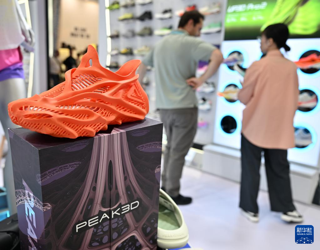 11月3日在广交会展馆拍摄的匹克3D打印健步鞋。