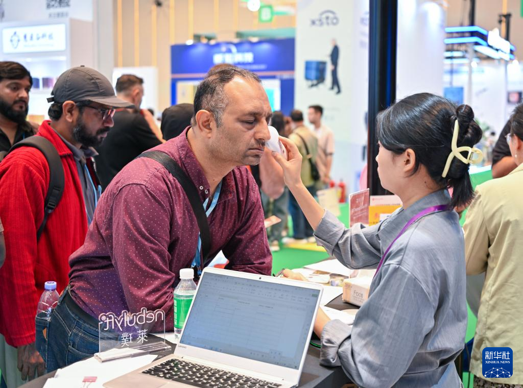 11月4日,采购商在第138届广交会的智慧医疗专区了解产品。