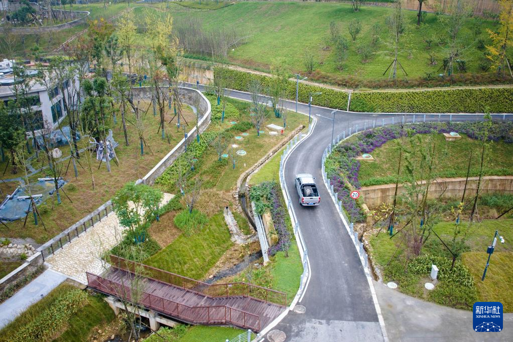 11月4日,在中国大熊猫保护研究中心绵阳基地,工作人员驾车转运大熊猫入住(无人机照片)。