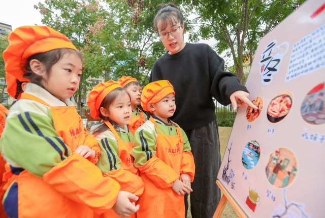 小朋友们在志愿者的讲解下学习了解传统节气立冬的相关知识 陈海伟 摄